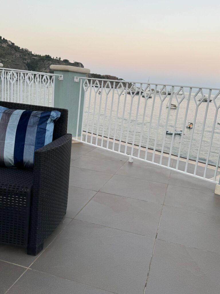 Blue Tao Maison – Dove il mare incontra la bellezza di Taormina. Affacciata direttamente sulla spiaggia, al confine tra Giardini Naxos e Taormina, Blue Tao Maison è un angolo di paradiso dove svegliarsi con il suono delle onde e ammirare panorami da sogno. A pochi passi dalla stazione ferroviaria più antica e suggestiva d’Italia, la casa si sviluppa su tre livelli e offre ogni comfort, incluso un solarium panoramico con vista sulla baia di Villagonia e su Taormina. Un rifugio ideale per chi desidera vivere l’autentica bellezza della costa siciliana.